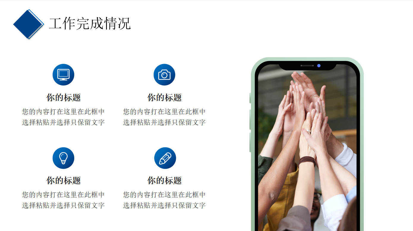 本作品内容为蓝色商务风企业工作汇报PPT通用模板, 格式为 pptx, 大小9 MB, 页数为25,比例16:9, 请使用软件PowerPoint(2019)打开, 作品中主体文字及图片可替换修改,文字修改可直接点击文本框进行编辑,图片更改可选中图片后单击鼠标右键选择更换图片,也可根据自身需求增加和删除作品中的内容, 源文件无水印, 欢迎使用。 如认为平台内容涉嫌侵权,可通过邮件提出书面通知,我们将及时处理。